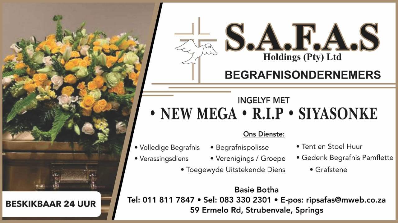 Discover Serenity and Compassion at S.A.F.A.S Funerals: Springs' Premier Funeral Home.